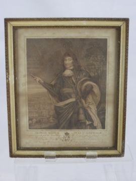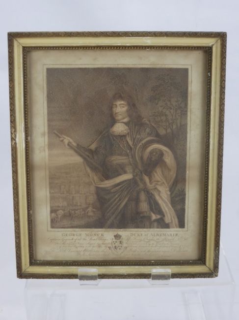 An 18th Century Stipple Engraving of George Monck Duke of Albemarle Captain General of all the Land Forces of King Charles II, published October 1796 by C. Bestland, West End, Hampshire, approx 28 x 23 cms together with an engraving by S. Lacey of Gloucester from Robin's Wood Hill, approx 16 x 12 cms (2)
