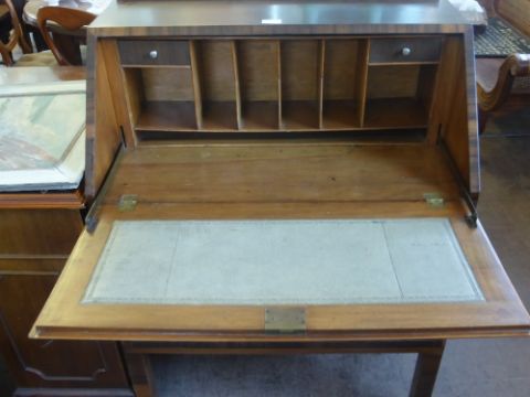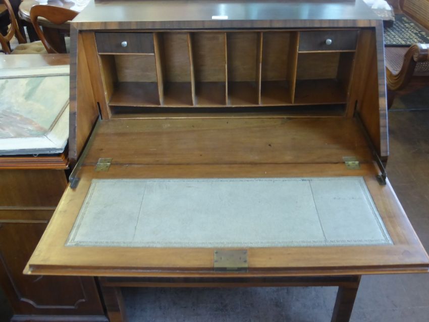 A Marquetry Inlaid Art Deco Style Bureau, with fitted interior, three graduated drawers, approx 77 x 57 x 135 cms