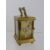 A Miniature French Brass Hand Painted Carriage Clock, porcelain side panels depicting cherubs catching butterflies, hand painted enamel face with Roman dial, approx 9 x 6 cms.