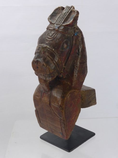 An Antique Indian Timber Support Carving, in the form of a horse on a stand, approx 34 cms high.