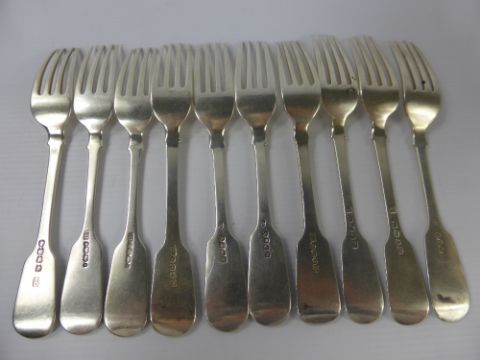 Ten Victorian Silver Small Forks, various London makers, including Stephen Smith, R.J.J. Williams and J.A. Savory, approx wt 480 gms.