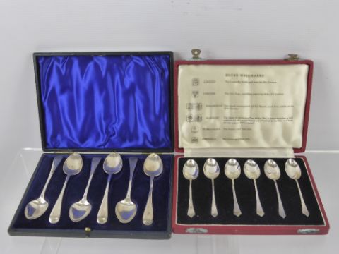 A Set of Six Silver Coffee Spoons, Birmingham hallmark, mm James Swann, in original box together with a presentation set of six solid silver "Silver Hallmark" coffee spoons in the original box.