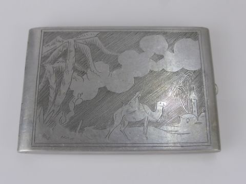 WWII Aluminium P.O.W. Cigarette Case, the case engraved J.D.T., 71 Camp P.O.W.