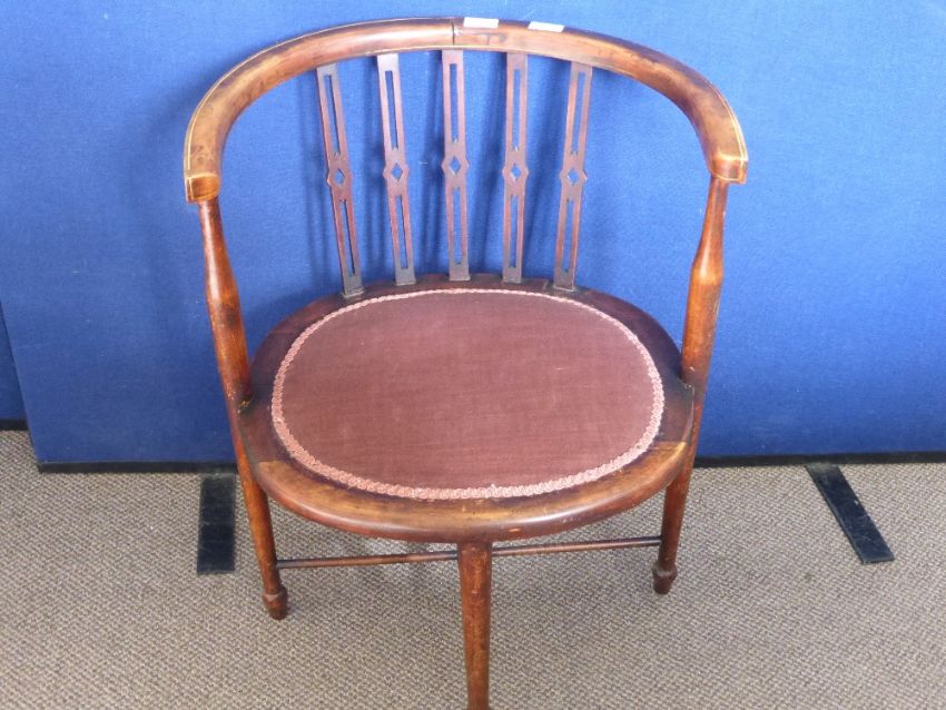An Antique Horse Shoe Back Chair, the chair having slatted back.