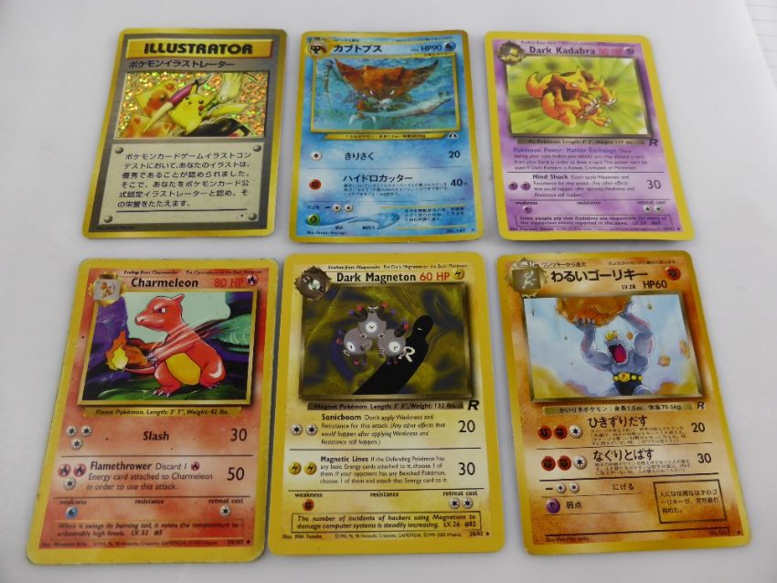 A Miscellaneous Collection of Pokemon Playing Cards, including Dark Kadabra, Illustrator, HP90, Charmeleon, Dark Magneton, HP70, HP60, Venonat,Slowbro, Lapras, Sabrina's Slowpoke, Marowak, Grimer, Bellsprout, Persian, Erika's Exeggcute, Krabby, Rattata, Brock's Golbat, Doduo, Qnix, Gloom, Fearow x 2, Kangaskhan, Dugtrio, Exeggutor, Mr Mime, Mankey, Energy.