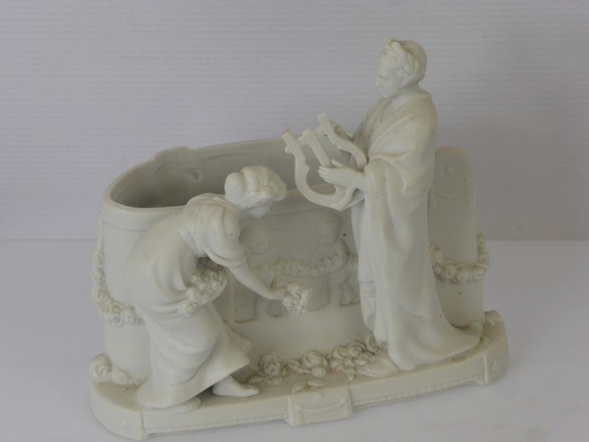 A Katzhutte Blanc de Chine Posy Vase, depicting a Grecian scene, approx 17 cms w x 14 cms h.