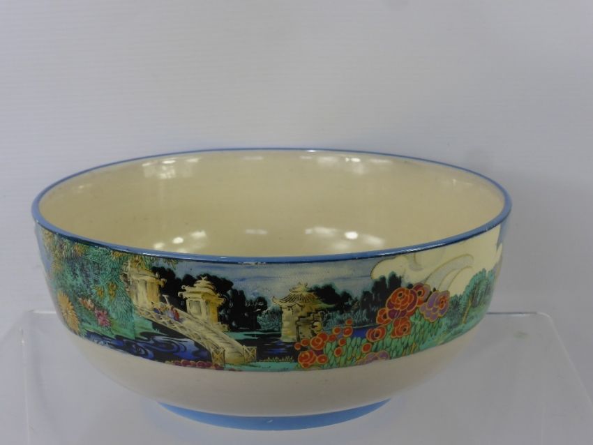Clarice Cliff for Newport Pottery Bowl, depicting pagoda garden, approx 21 cms dia.