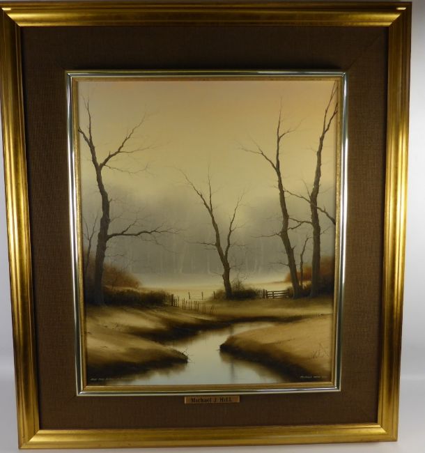 Michael John Hill, A Pair of Landscape Paintings on Canvas, one entitled "Snow is Due" approx 60 x 50 cms, the other "That Same Favourite Place", approx 50 x 60 cms, both framed.