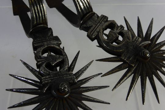A Pair of 19th Century Steel Spanish Colonial Spurs, with 19 rowels, approx 24 cms.