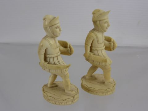 Two Antique Ivory Chess Pieces, depicting Roman soldiers, approx 7.5 cms. (waf) (2)