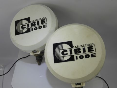 A Pair of Vintage Chrome Cibie Oscar Rally Spotlights, with original covers and receipts.