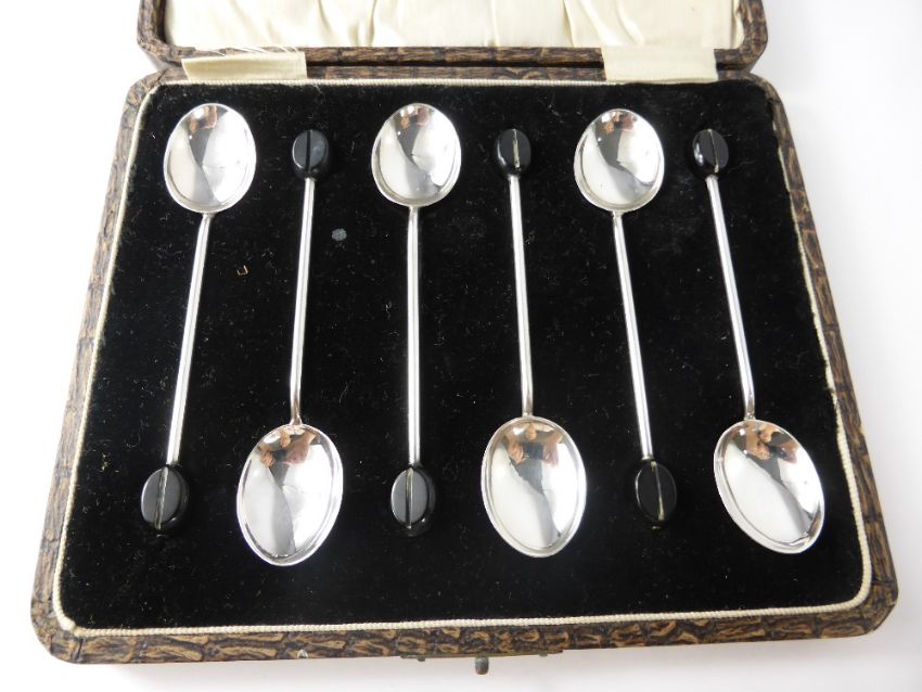 A Set of Six Coffee Spoons, in original presentation box. Birmingham hallmark mm S. Ltd dd 1949, approx 36 gms.