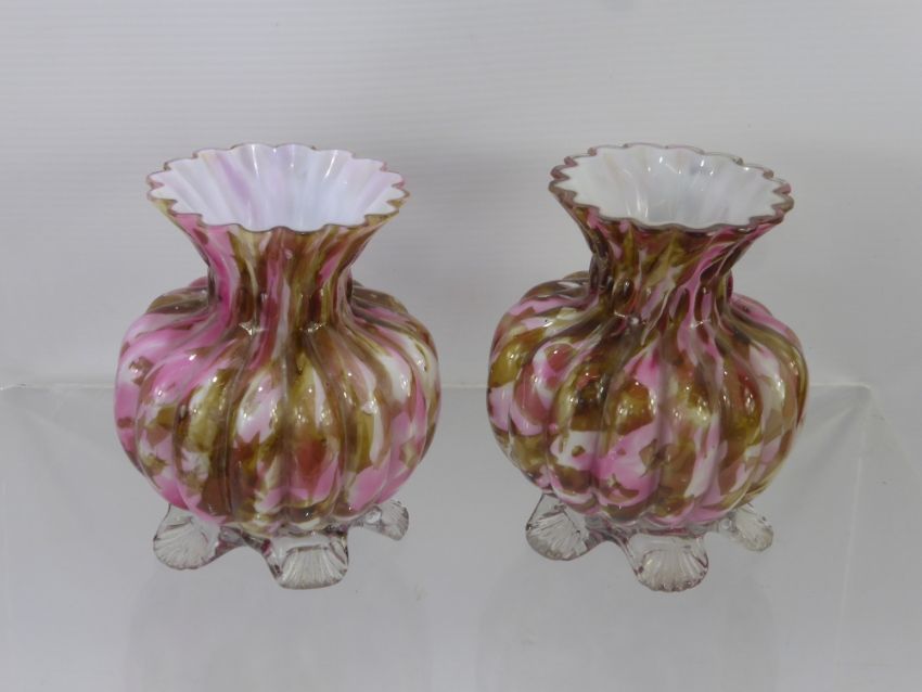 A Pair of Victorian Fluted Hand Blown End of Day Vases, circa 1880. (2)