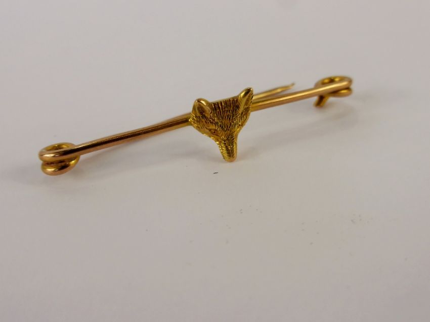 An Antique 15 ct Gold Fox Head Stock Pin, approx wt 2.9 gms.