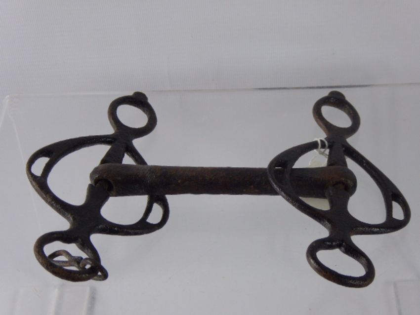 A Pair of 18th Century Cast Iron Boot Stirrups, together with cast iron horse bit, believed to be of Mongolian origin. (3)