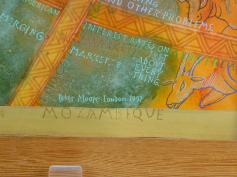 Peter Moore, Contemporary Mixed Media on Japanese paper, original mount and frame, signed and dated, London 1997, incl frame approx 70 x 52 cms.
