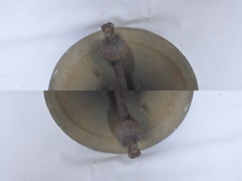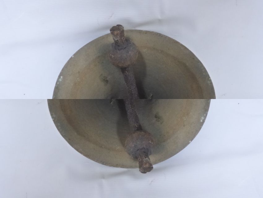 An Antique Brass Outdoor Bell, approx 25 cms dia x 26 cms high, together with a cast iron wall bracket.