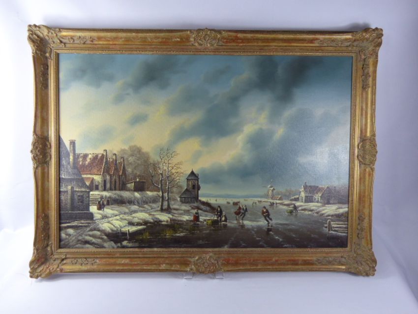 G. Schroter Dutch, 20th Century Oil on Canvas, depicting figure skaters, signed lower right, approx 60 x 90 cms