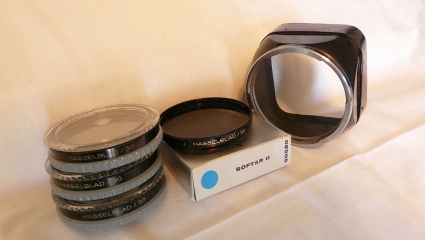 A Hasselblad Vintage Aluminium Camera and Case with Accessories, 1970's Hasselblad Alumiunum Flight Case, Hasselblad Lens Hood and 4 filters - Softar 2 = 3 X 50 1 x HZ-0, Hasselblad Tripod Quick Coupling Adaptor No. 45004, Hasselblad Pro Lens Shade 40231 with bayonet style lens adaptor and frame masks, 120 mm-135mm-150mm plus a separate 250mm mask, Hasselblad 500C Handbook, Price Lists, Catalogue, Manual etc. All suitable for Hasselblad 500 Series Cameras.