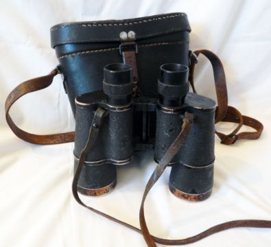 WWII Zeiss 'BLC' Gas Mask 7 x 50 Kriegsmarine Binoculars, in the original case. The binoculars are marked Dienstglas 7 x 50 and BLC (German wartime manufacturing code for Carl Zeiss). The serial number is 2227525 which dates them to 1942. They are complete with their original leather strap and black leather case. The case is dated 1942 and bears the markers name of Walter Winkler together the Wermacht Eagle.