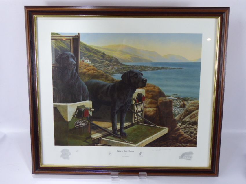 Nigel Hemming, a limited print 'Four by Four' nr 31/500, signed bottom right with personal message to back of board, approx 60 x 40 cms, together with another 'Man's Best Friend' nr 140/500, approx 58 x 50 cms, signed bottom right.