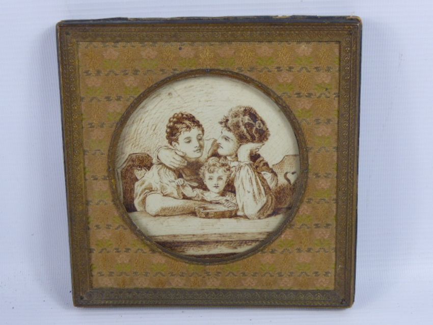 A Collection of Antique Miniatures, including a portrait of a young lady, together with a sepia portrait of a young family. (4)