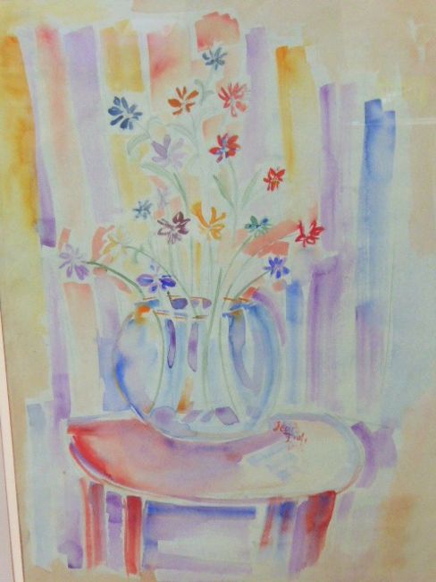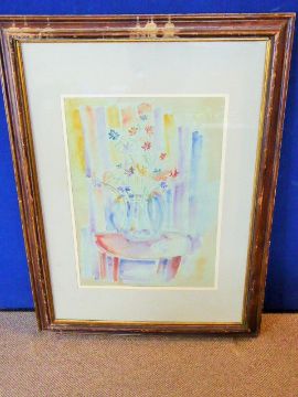 Manner of Jean Dufy, French 1877-1953, Still Life Water Colour, signed lower right Jean Dufy dated 1956, approx 58 x 77 cms, Christy's label to verso, Andre Chenue & Fils Paris label to verso, framed and glazed.