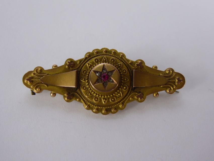An Edwardian 9 ct Gold Red and White Stone Mourning Brooch, approx 2.9 gms.