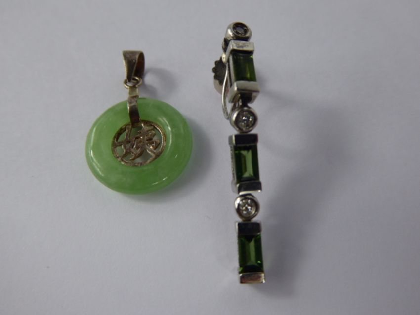 Miscellaneous Jewellery, including apple jade pendant, a single 18 ct gold tourmaline and diamond earring, 3 x 5.3 mm tourmaline and 3 x 3.5 pt dias, approx 3.4 gms
