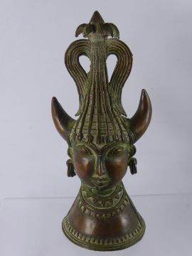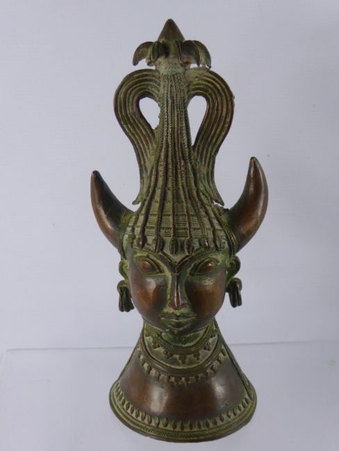 A Metal Hindu Horned Deity, having weighted base, approx 30 cms high.