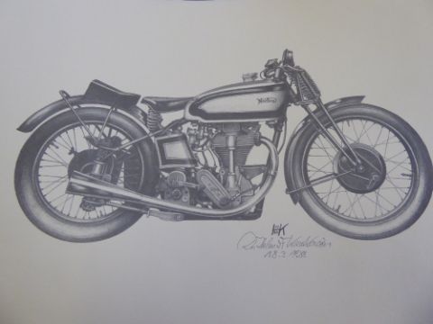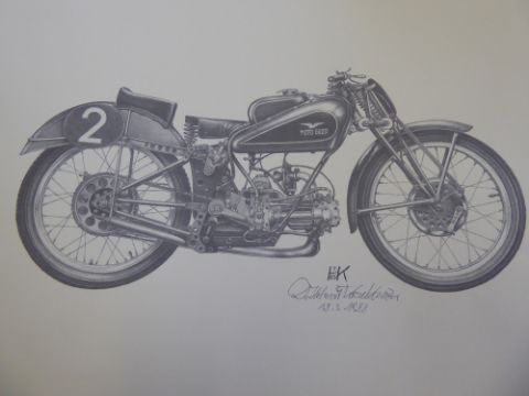 Four Limited Edition Prints, by Dr Helmut Krackowizer "Mister Rudge" from the Motorrad Meilensteine Series, including BMW 500 Kompressor 1937/39, Norton 350/500 1937, Moto Guzzi 250 1935/37 and PUCH 250 Ladepumpe 1931. (4)