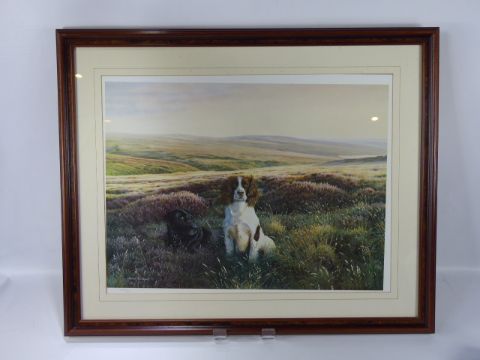 Steven Townsend, a limited edition print nr 454/600 depicting a Labrador and Spaniel amongst heather, both approx 58 x 43 cms, signed bottom left, together with another depicting two sheep dogs nrd 195/675.