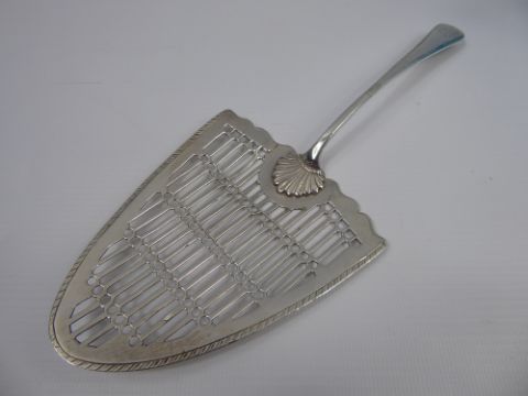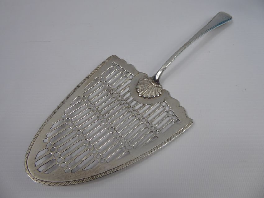 A Georgian Silver Server, marks rubbed, suitable for both fish or cake slice, with decorative open weave design.