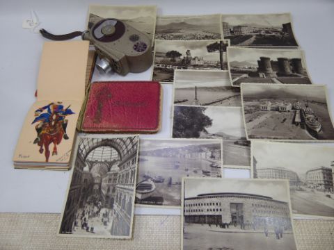Miscellaneous Items, including a Vintage Bell & Howel 605 Double Run Eight Cine- Camera, good quality black and white post cards of Naples Italy in the 1920's, a miscellaneous quantity of cigarette cards, autograph books and a copy of the Story of Gloucestershire.
