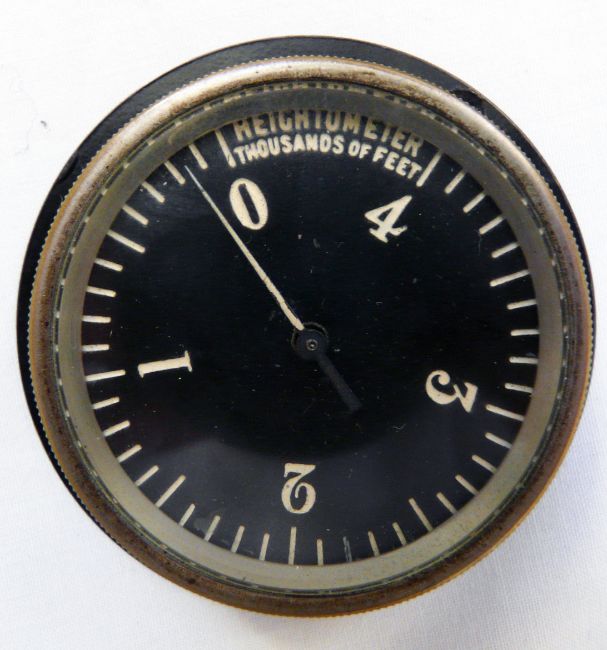 A WWI Heightometer, the heightometer is calibrated in thousands of feet and 2" diameter dial has bevelled glass. The case is marked S-and-M and J Halden & Co Ltd, Manchester. Note: heightometers were bought privately by pilots in the Royal Flying Corps whose planes were not fitted with them as standard.