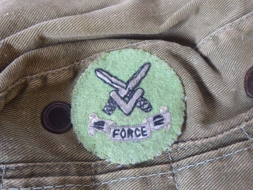 V-Force (Burma) 1944 Pattern Jungle Hat, the 1944 Jungle hat has the original V-Force cloth badge. The hat is dated 1945 and marked with makers name J Collett London plus the military broad arrow. The hat bears the name Captain Brown.