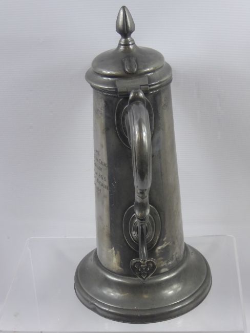 An English Pewter Spire Flagon, inscribed and dated 1863, TOWLAW, County Durham, approx 36 cms.