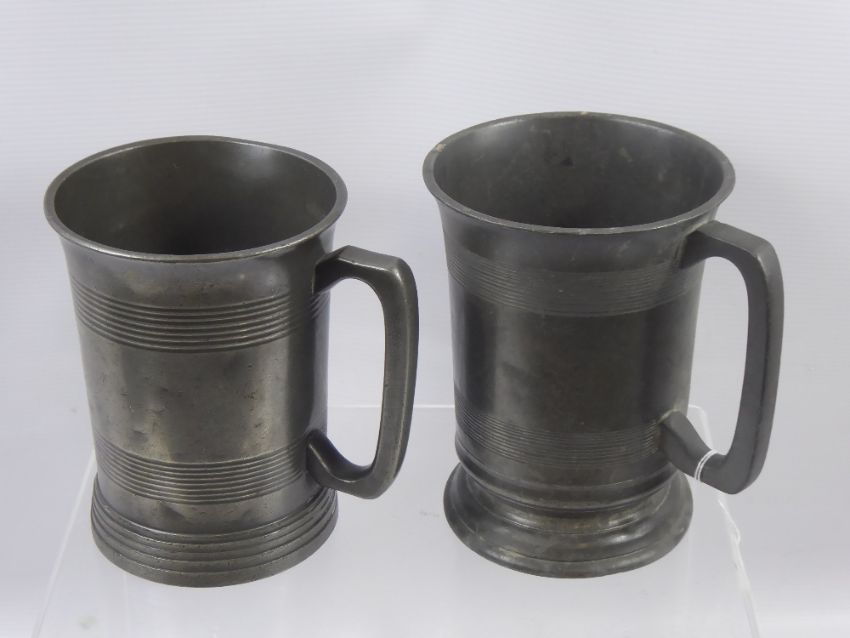 Two 19th Century English Pewter 1 Quart Measures, both inscribed with public house names and landlord's initials. (2)