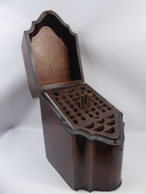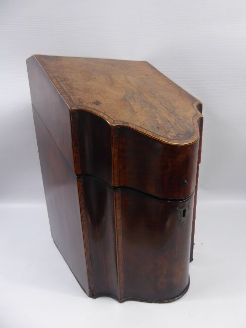 A Georgian Mahogany Knife Box, with the original fitted interior, approx 30 x 23 cms, with decorative fruit wood inlay to lid interior and surround.
