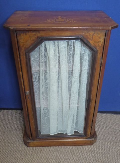 A Mahogany Inlaid Edwardian Glazed Front Music Cabinet