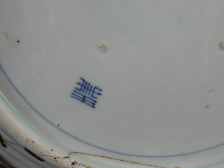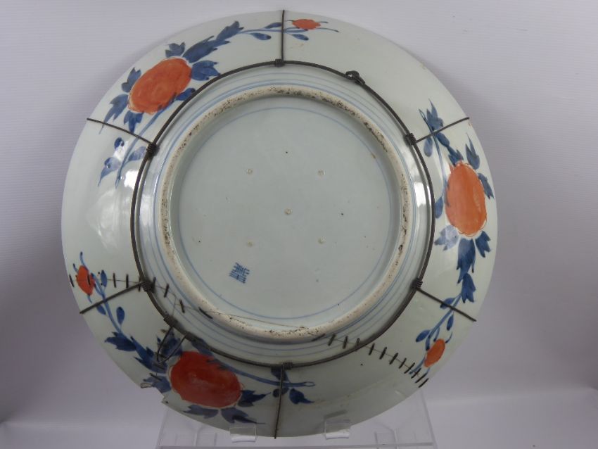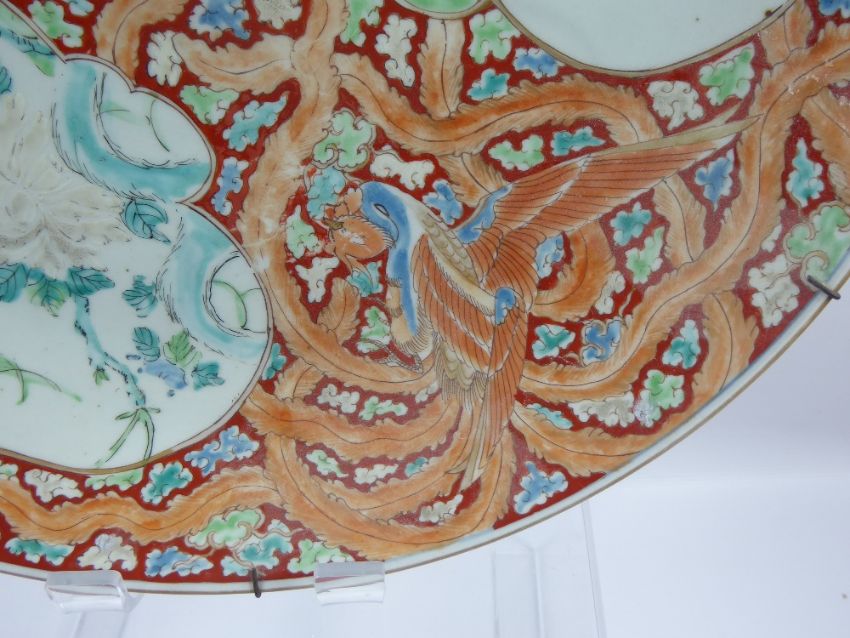 A 19th Century Chinese Charger, with panels depicting blue chrysanthemum and phoenix, approx 47 cms diameter. (af)