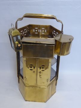 A Vintage Brass Hexagonal 'Street Vendor's Stove', with fitted chapatti canisters, approx 36 x 72 cms.