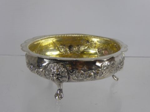 A Solid Silver Victorian Bon Bon Dish, having lion mask and claw feet, London hallmark dated mm John Aldwinckle & James Slater.