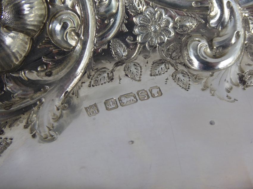 A Solid Silver Victorian Floral Embossed Bon Bon Tray, Sheffield hallmark dated 1885, mm P.S.J.H., approx 270 gms.