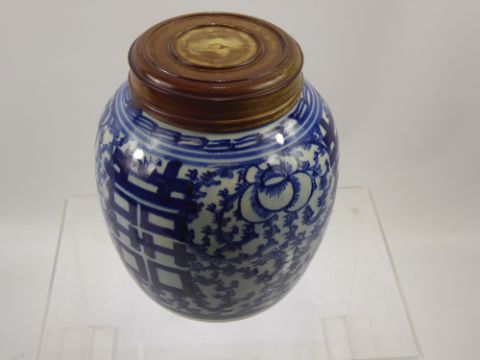 A Chinese Blue and White Ginger Jar, with wooden cover, approx 21 cms