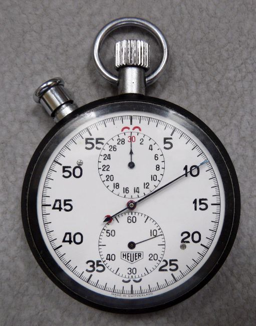 A Vintage Tag Heuer "Split Timer" Stop Watch, dating from the 1960's. complete with original rubber protective case.