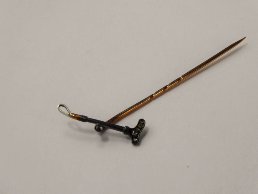An Antique Rose Cut Diamond and Gold Tie Pin, in the form of a riding crop, approx 1.3 gms