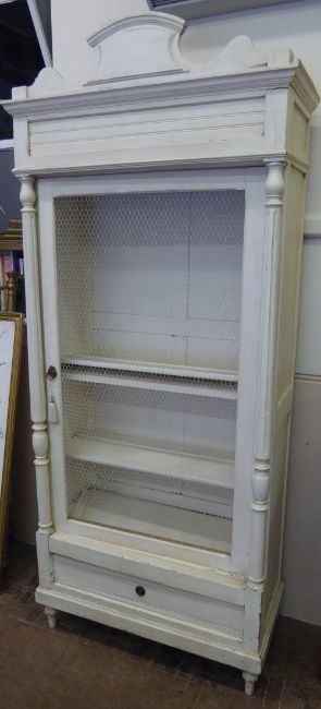 A White Painted Open Front French Armoire, the armoire with three shelves having a drawer to bottom, raised on turned feet, approx 90 x 42 x 210 cms.