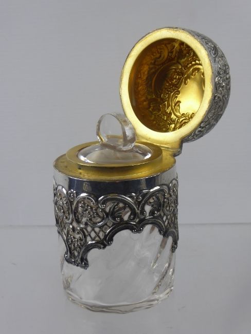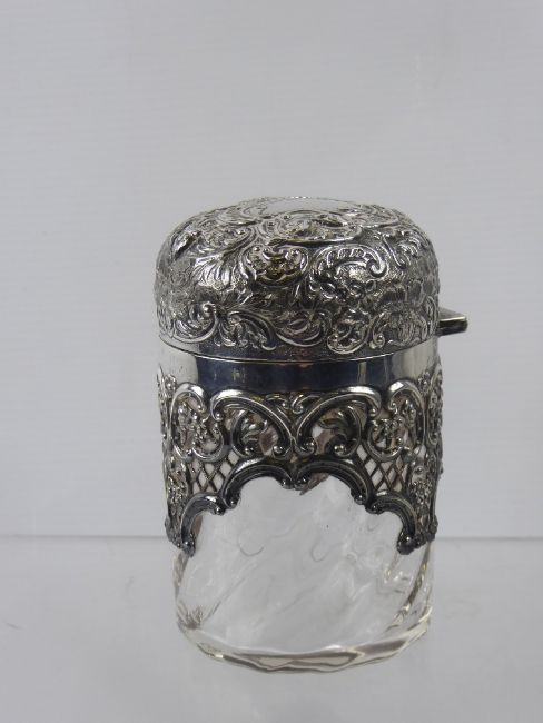 A Large Cut Glass and Silver Topped Vanity Jar, London hallmark, dated 1921, with the original stopper.