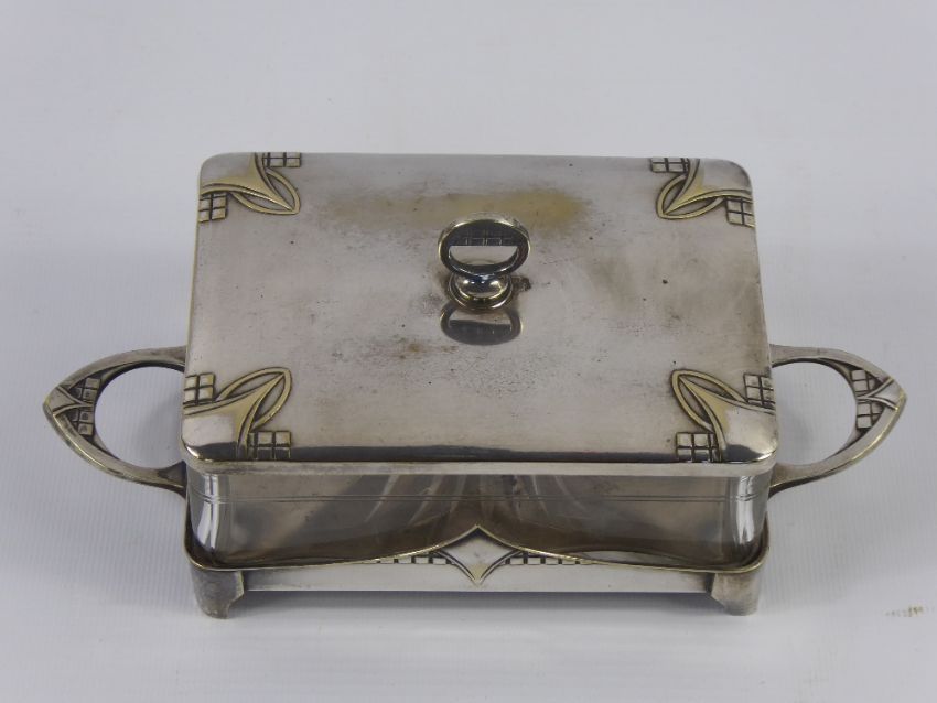 An Art Nouveau 'Wurtemburg Metalware Factory' Silver Plated Butter Dish, circa 1880, with original glass liner.